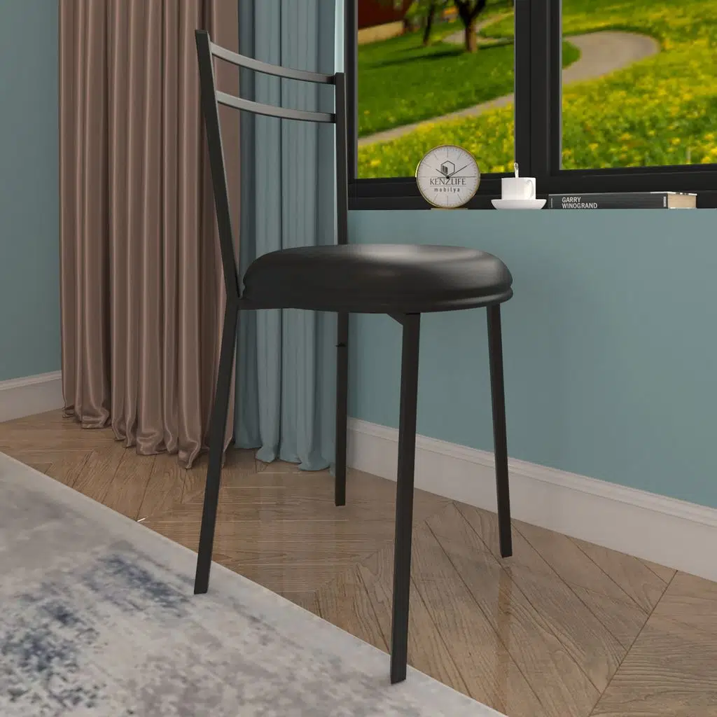 Bakbudaiyi metal sandalye masum 4 lü syhsyh mutfak sandalyesi suni deri siyah minder siyah boya metal