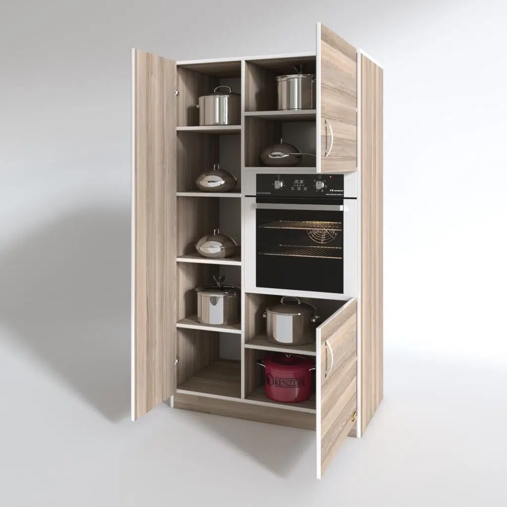 Ürünümüzün bir tarafında üst ve alt kısmında içinde rafları olan kapaklı dolaplar ve orta kısmında ankastre fırın koymak için bölmesi bulunmaktadır. Diğer tarafında 4 raflı kapaklı bir dolap bulunmaktadır.