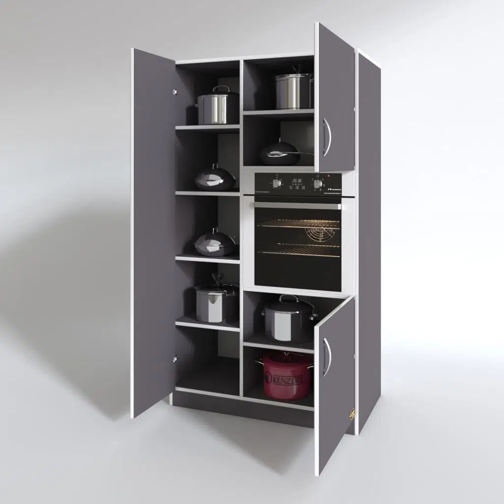 Ürünümüzün bir tarafında üst ve alt kısmında içinde rafları olan kapaklı dolaplar ve orta kısmında ankastre fırın koymak için bölmesi bulunmaktadır. Diğer tarafında 4 raflı kapaklı bir dolap bulunmaktadır.