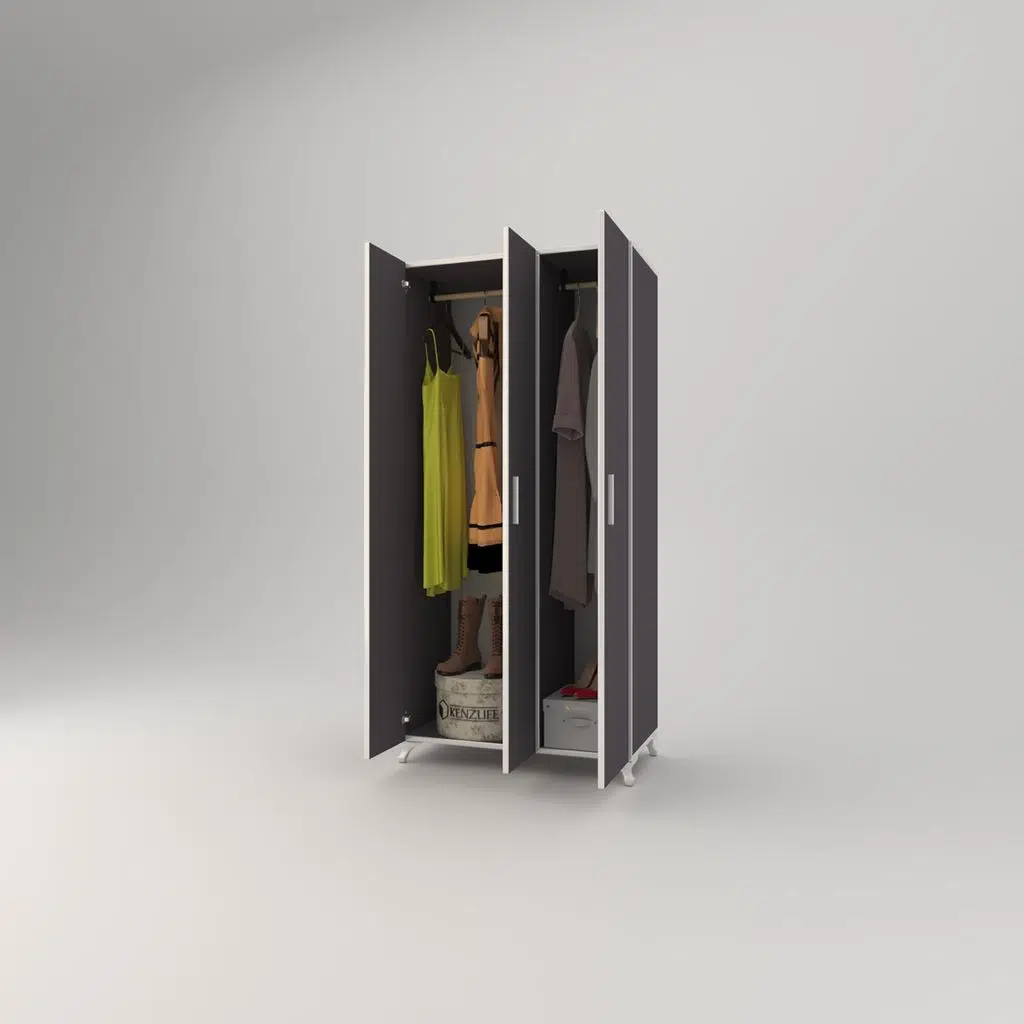 Ürünümüz sol tarafında 2 kapağı sağ tarafta tek kapağı bulunan her iki taraftada içinde askı bulunan basit küçük eko bir üründür.