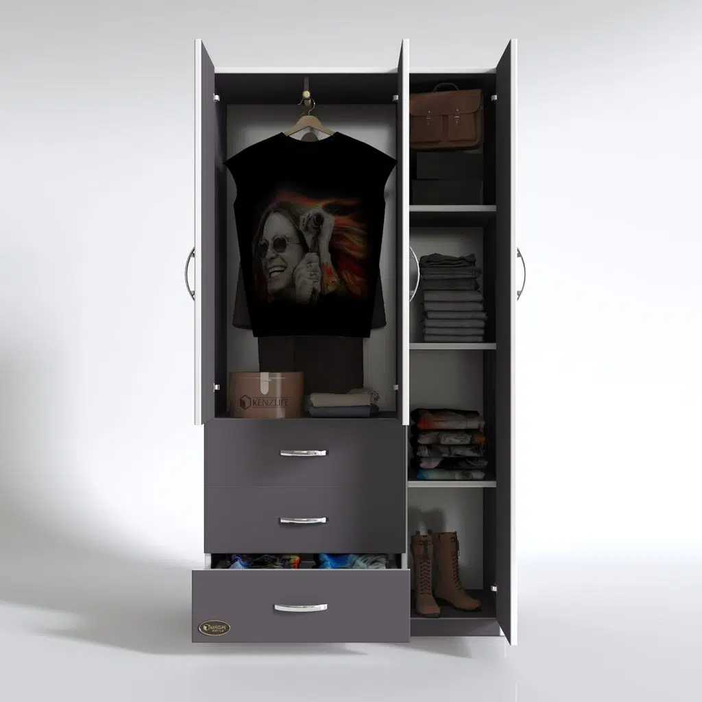 EtiketlerKenzlife gardırop 3 kapılı 3 çekmeceli civanperçemi 180*120*52 gri XLARGE kapaklı gardolap dolap