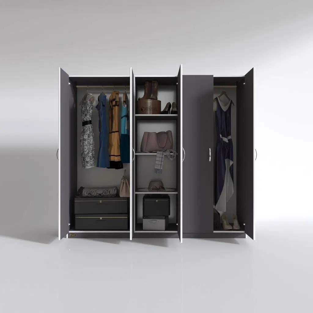 EtiketlerKenzlife gardırop 5 kapılı horozibiği 180*200*52 gri XLARGE kapaklı gardolap dolap