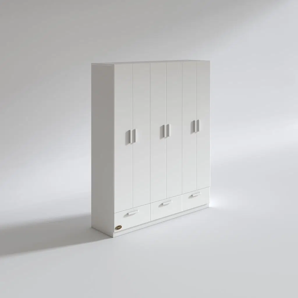 Ürünümüz 6 kapılı orta bölüm altında 3 çekmecesi olan bir gardıroptur. İçinde askılıklar ve yüklükler mevcuttur.