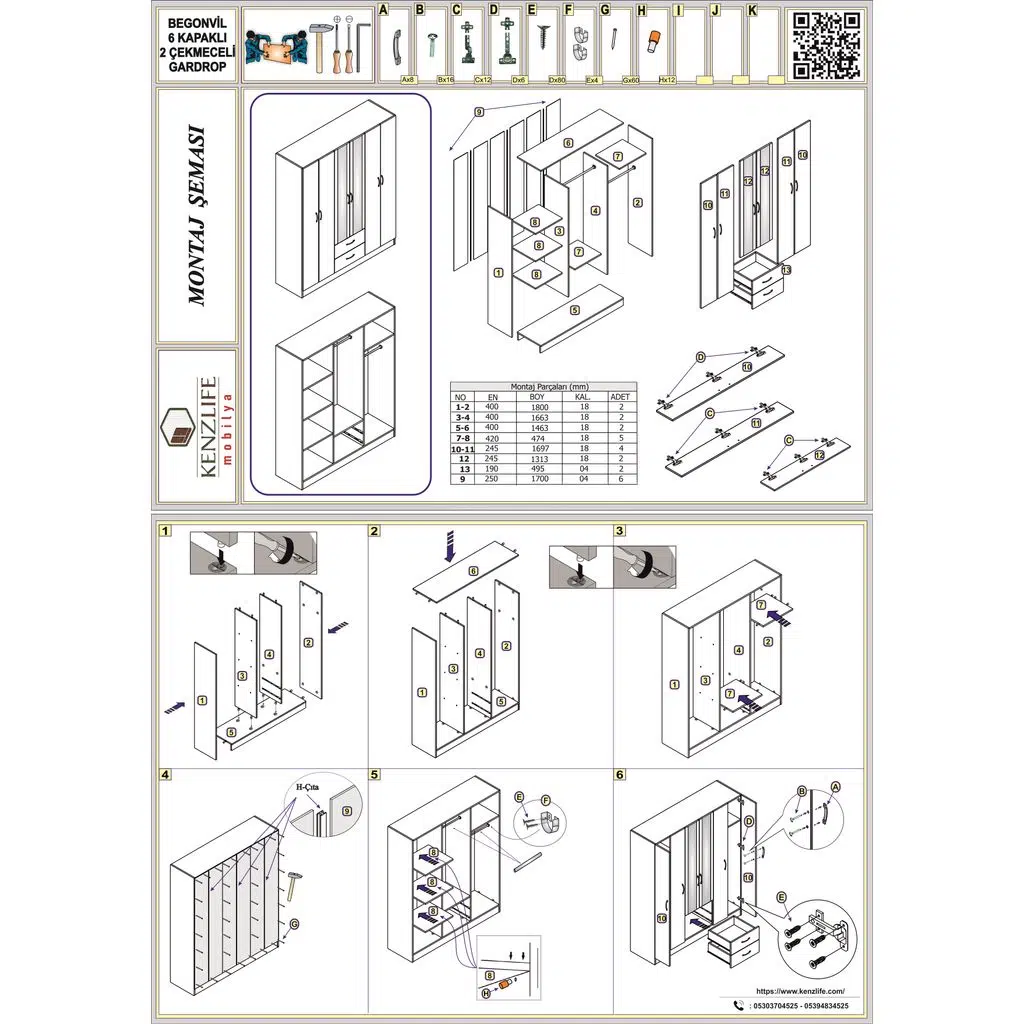 KENZLİFE BEGONVİL 6 KAPILI 2 ÇEKMECELİ GARDIROP
