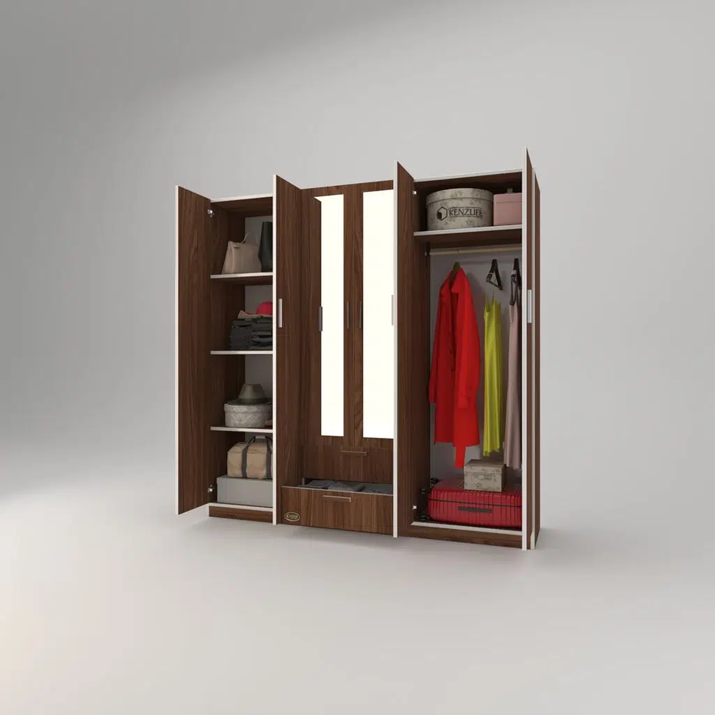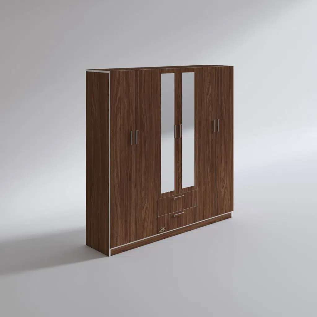 Ürünümüz 6 kapılı orta bölüm altında 2 çekmecesi olan bir gardıroptur. Sol 2 kapının olduğu bölümde 4 bölümden oluşan raflar mevcuttur. Orta bölümün altıda 2 çekmece mevcuttur. Orta bölümün üstünde elbise asmak için askılık mevcuttur. Sağ 2 kapının olduğu yerde üste tarafta yüklük hemen altında askılık mevcuttur. Ortadaki iki kapının üstünde boy aynası mevcuttur.