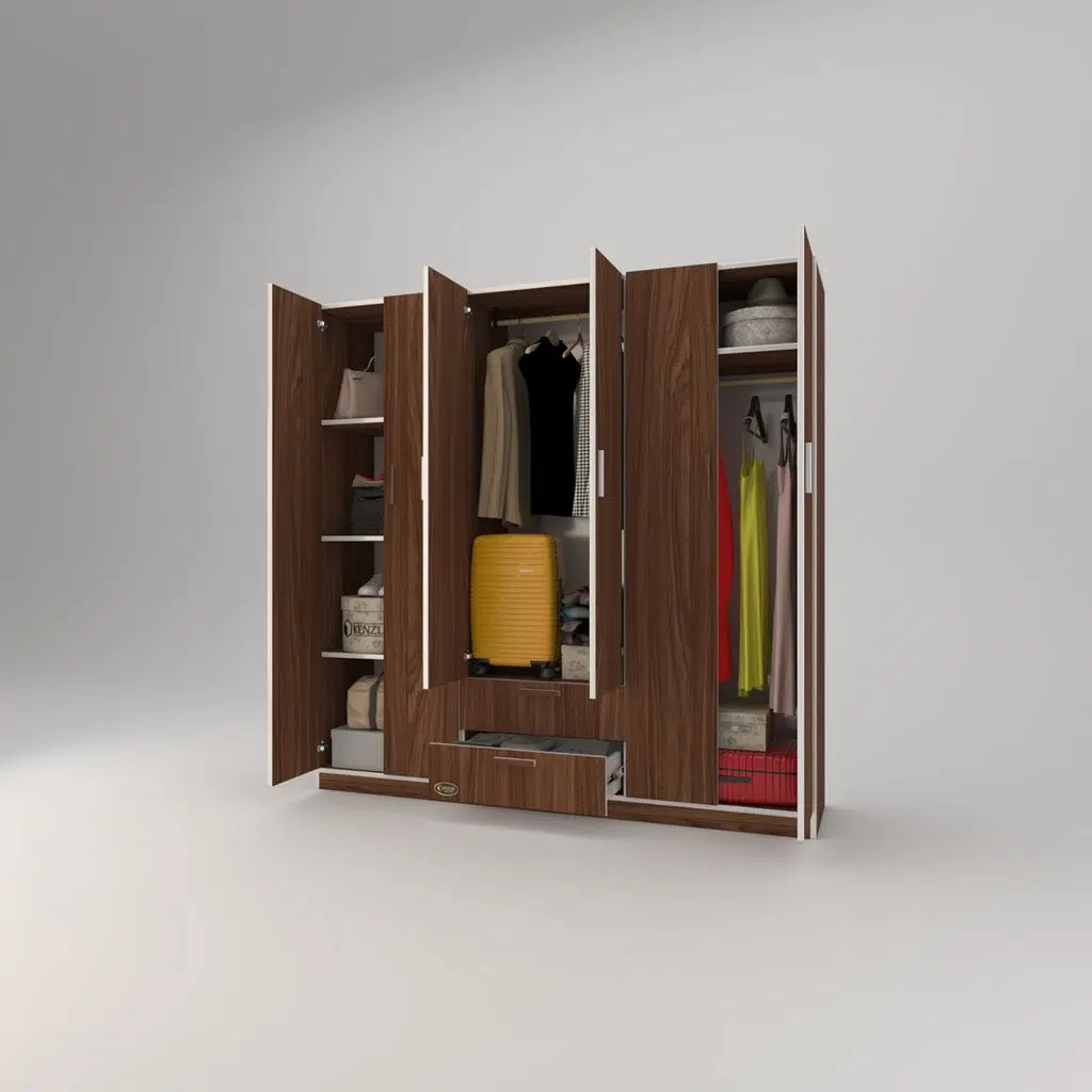 Ürünümüz 6 kapılı orta bölüm altında 2 çekmecesi olan bir gardıroptur. Sol 2 kapının olduğu bölümde 4 bölümden oluşan raflar mevcuttur. Orta bölümün altıda 2 çekmece mevcuttur. Orta bölümün üstünde elbise asmak için askılık mevcuttur. Sağ 2 kapının olduğu yerde üste tarafta yüklük hemen altında askılık mevcuttur.