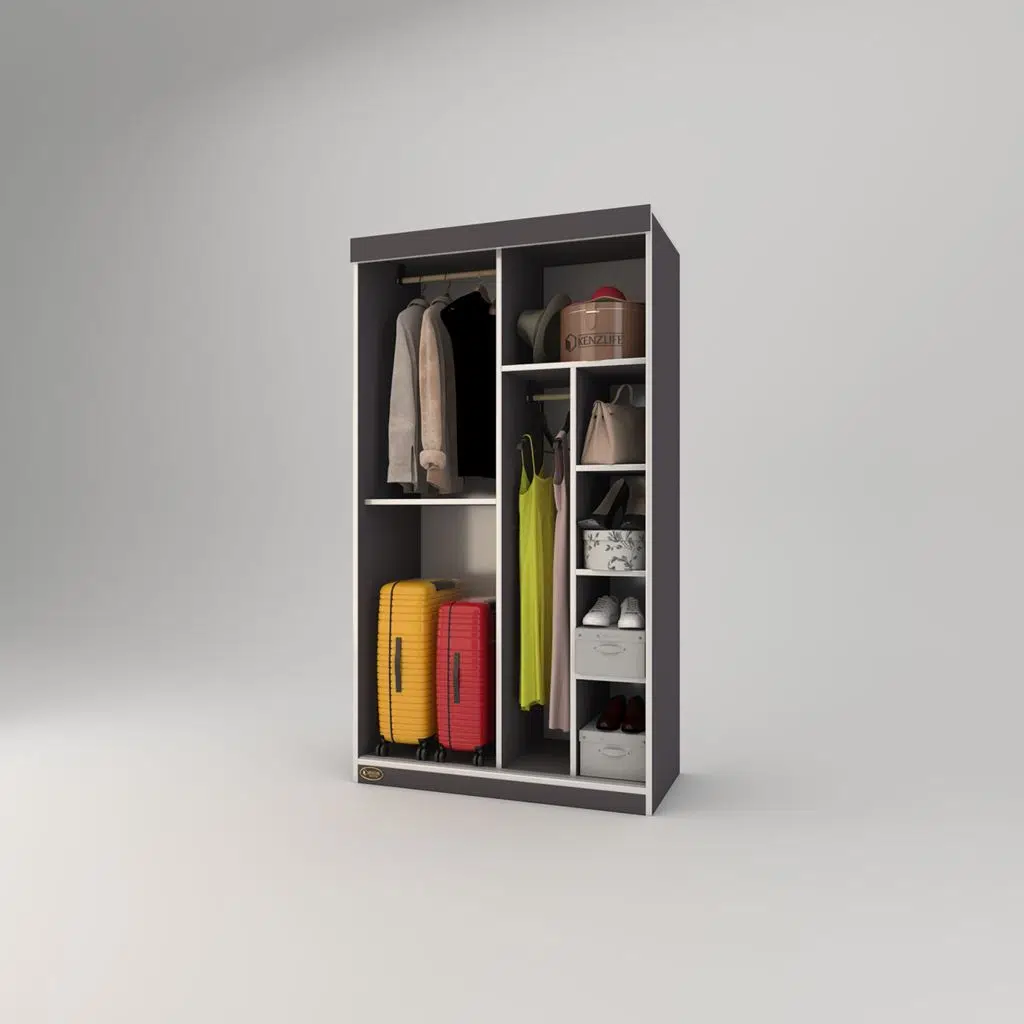 Kenzlife gardırop sürgülü kapaklı kapılı 100 papatya gri aynalı gardolap dolap
