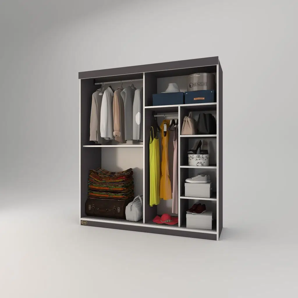Kenzlife gardırop sürgülü kapaklı kapılı 160 papatya gri gardolap dolap