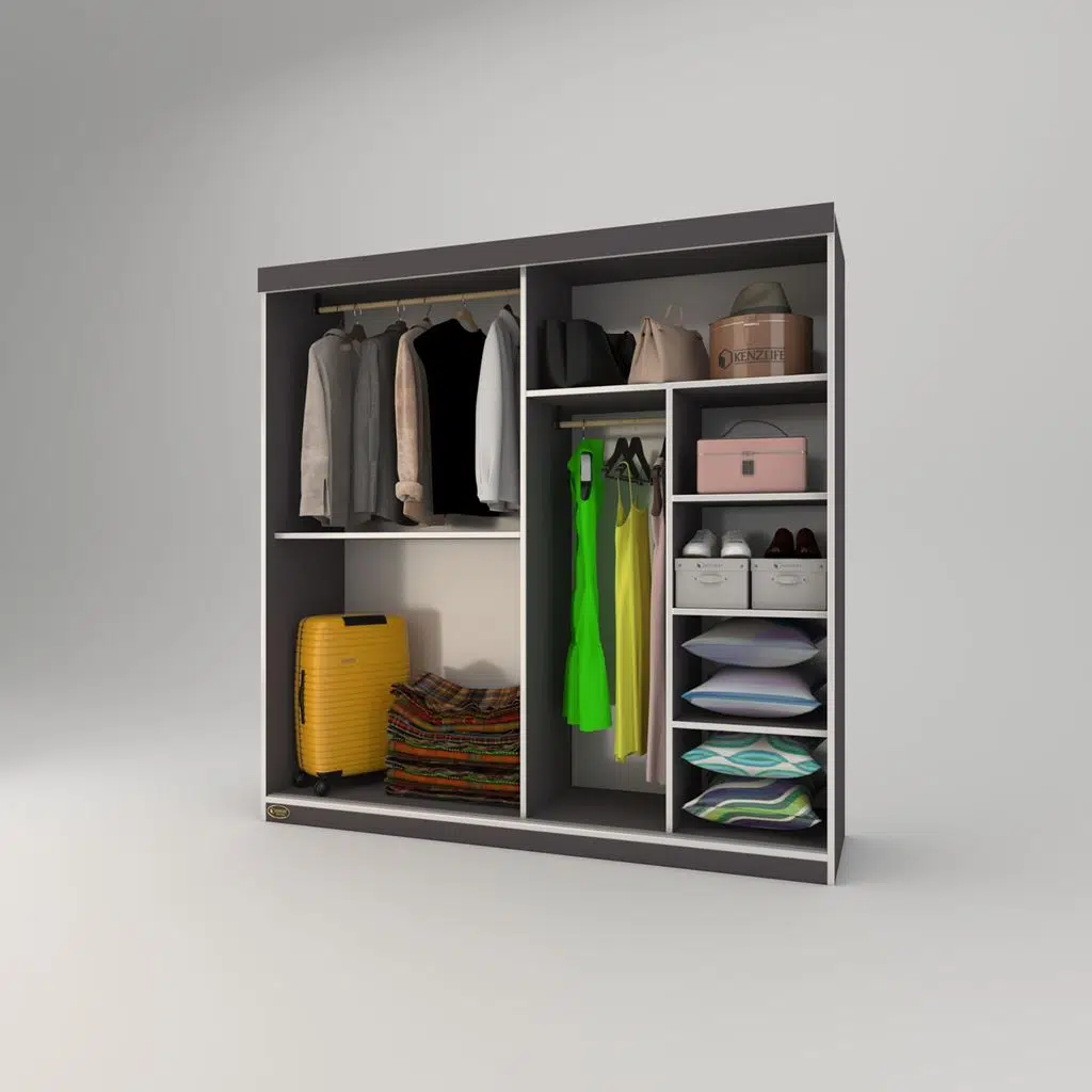 EtiketlerKenzlife gardırop sürgülü kapaklı kapılı 180 papatya gri gardolap dolap