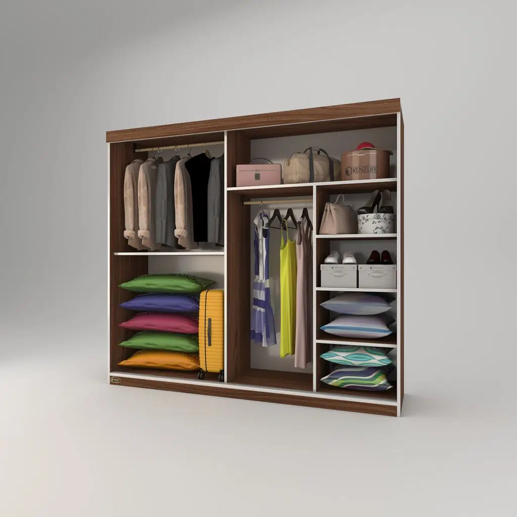 Kenzlife gardırop sürgülü kapaklı kapılı 200 papatya cvz aynalı gardolap dolap