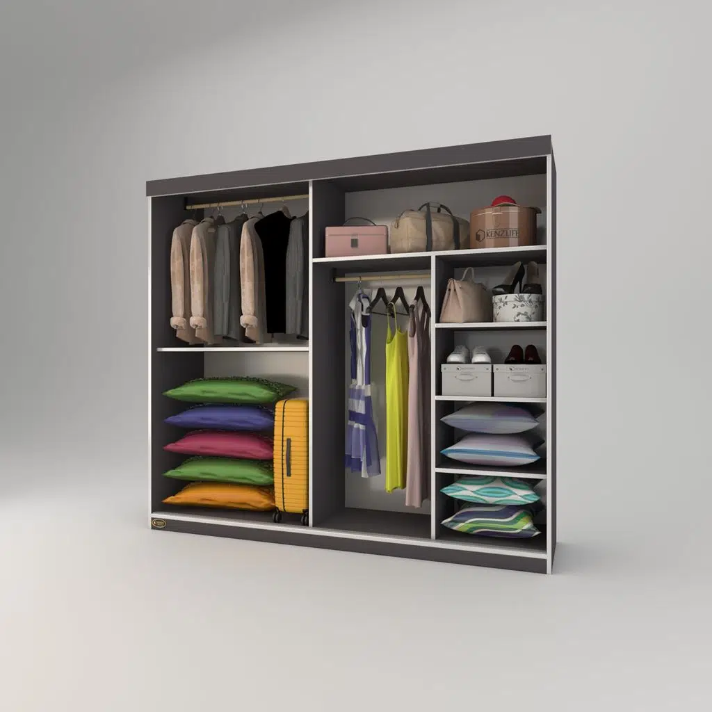 Kenzlife gardırop sürgülü kapaklı kapılı 200 papatya gri aynalı gardolap dolap