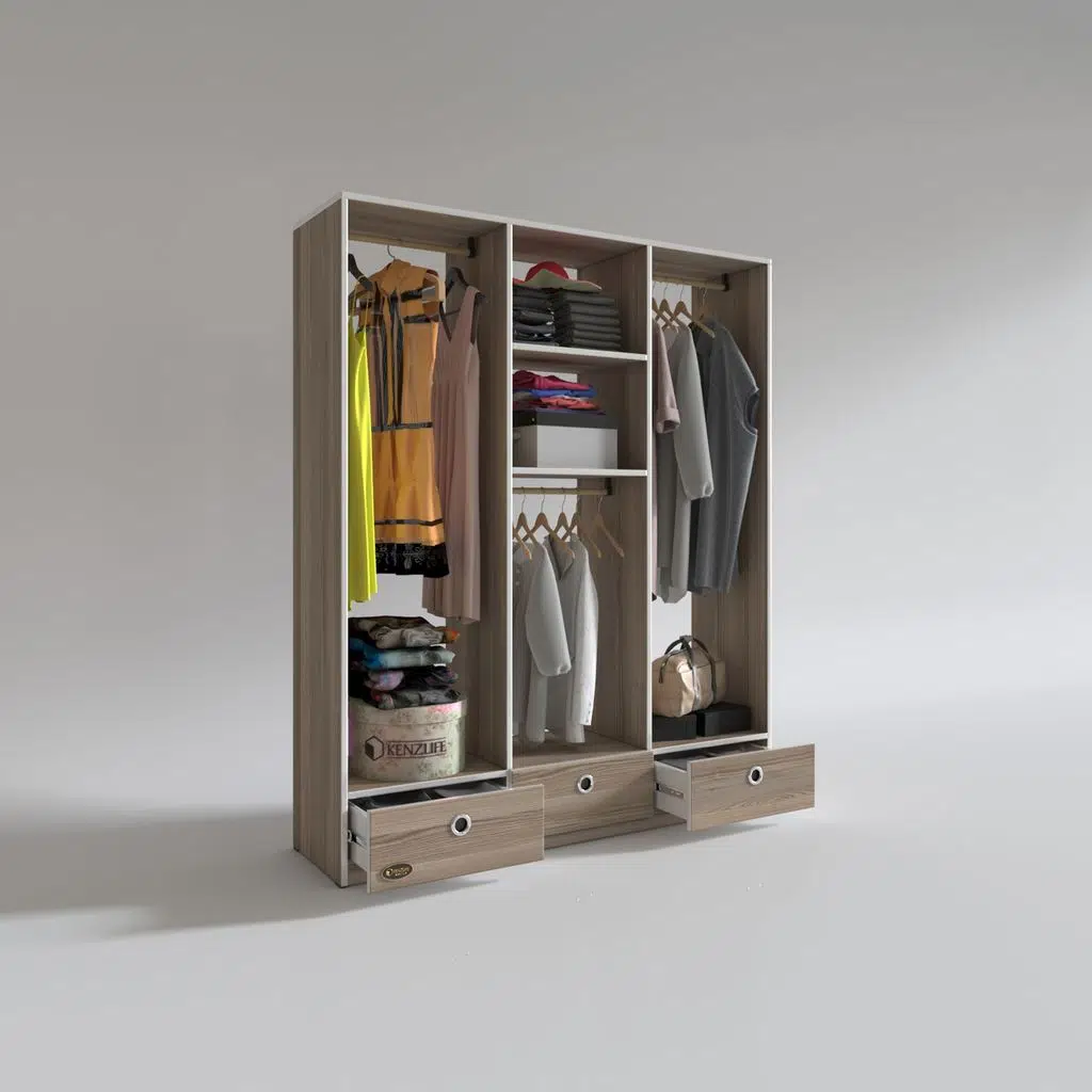 EtiketlerKenzlife giysi dolabı 3 bölmeli 3 çekmeceli hamit150 crd dolap kapaksız