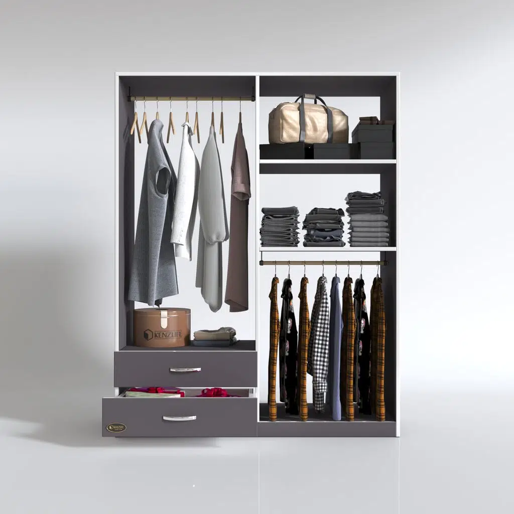 EtiketlerKenzlife giysi dolabı şemsettin 175*120*40 gri gardırop 2 çekmeceli