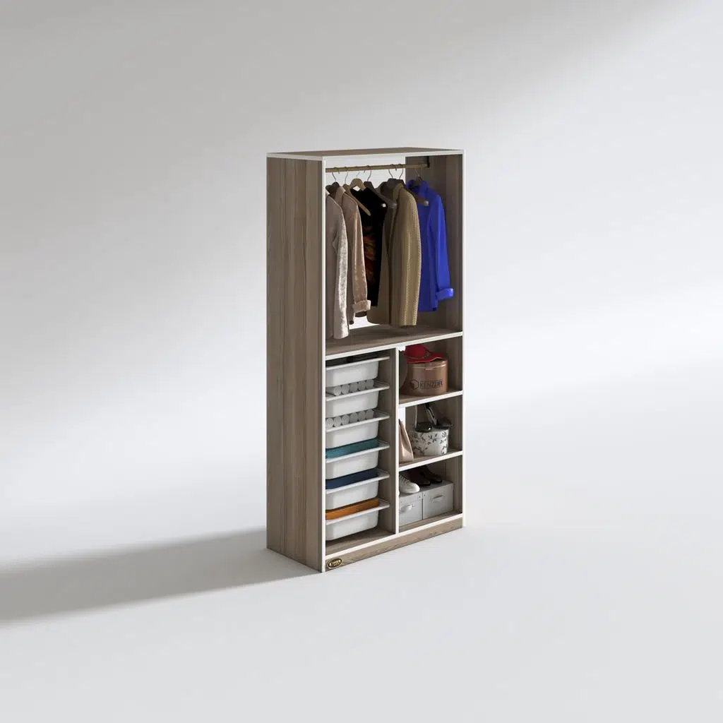 EtiketlerKenzlife giysi dolabı yalın crd 180*090*30 kapaksız arkalıksız 6 sepetli