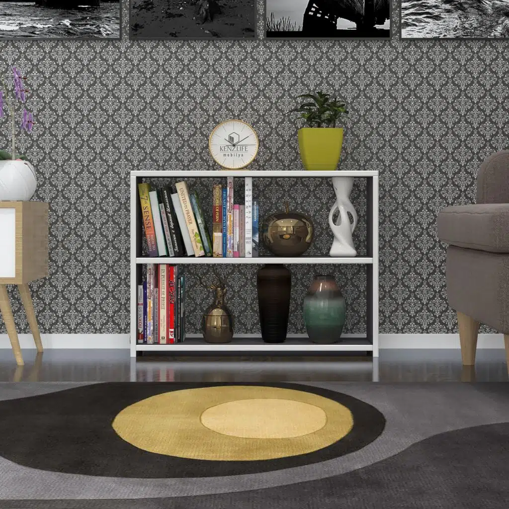 EtiketlerKenzlife kitaplık süper ga 060*80*19 gri 2 katlı tek bölme ofis mutfak banyo dolabı arkalıksız