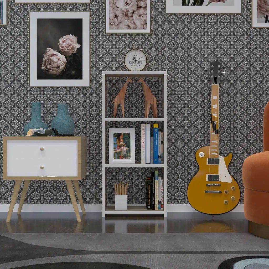 Kenzlife kitaplık süper ga 090*40*19 crd 3 katlı tek bölme ofis mutfak banyo dolabı arkalıksız