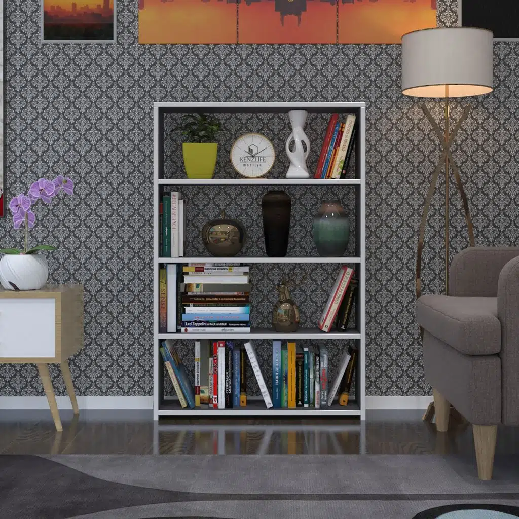 EtiketlerKenzlife kitaplık süper ga 120*80*19 gri 4 katlı tek bölme ofis mutfak banyo dolabı arkalıksız