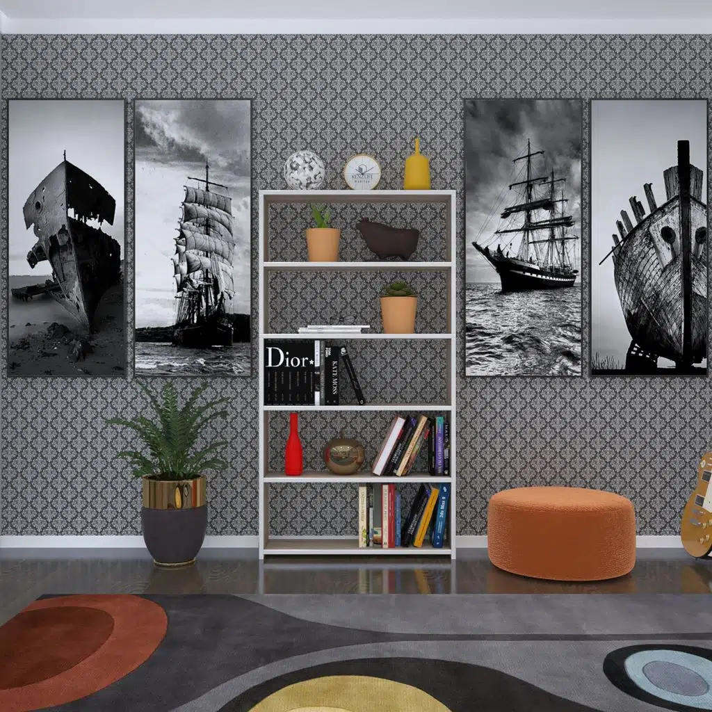 Kenzlife kitaplık süper ga 150*80*19 crd 5 katlı tek bölme çift bölme opsiyonlu ofis mutfak banyo dolabı arkalıksız
