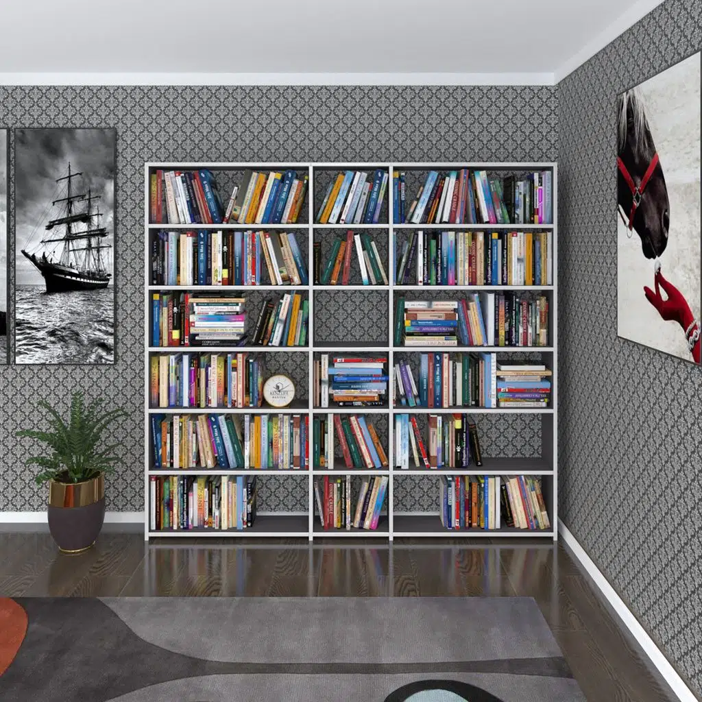 Kenzlife kitaplık süper ga 180*200*19 gri 6 katlı 3 bölme çift bölme opsiyonlu ofis mutfak banyo dolabı arkalıksız