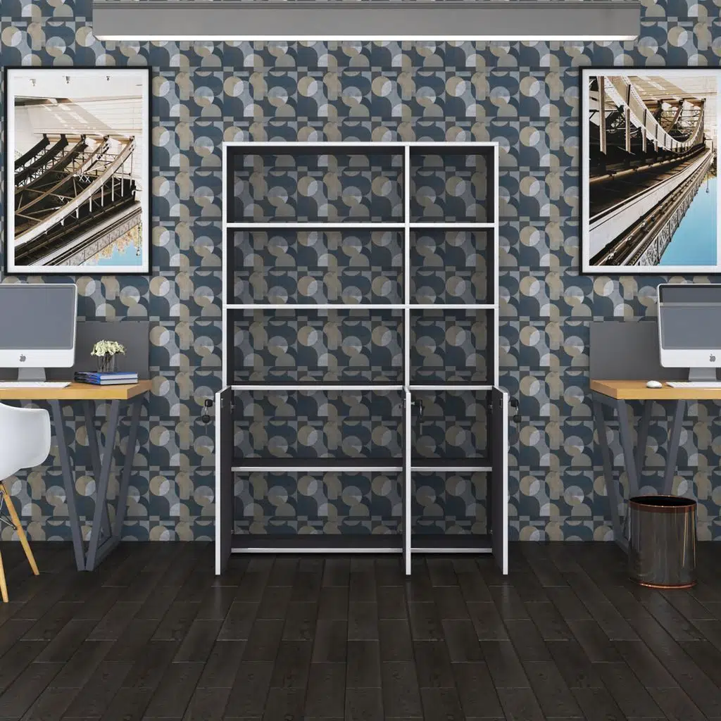 ÜRÜN ÖZELLİKLERİ • Klasörlük ve kitaplık olarak kullanabileceğiniz; 6' sı açık raf, 4' ü kapalı ve kilitli dolap olmak üzere 10 bölmeden oluşmaktadır. Kapalı bölüm 3 kapaklı olarak tasarlanmıştır. • Çift bölme opsiyonlu bir üründür. Yanyana ve üstüste kullanıma uygundur. • Ofis, çalışma odası, okul, işyeri gibi bir çok alanda kullanabileceğiniz bir üründür. • Farklı renk ve ebat seçenekleri mevcuttur. • Üründe arkalık yoktur. • Hafif nemli bir bezle silinerek temizlenir. • Ürün demonte olarak paketlenmiştir.