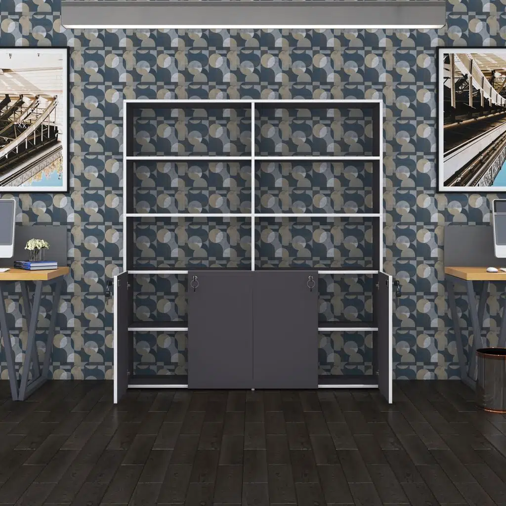 ÜRÜN ÖZELLİKLERİ • Klasörlük ve kitaplık olarak kullanabileceğiniz; 6' sı açık raf, 4' ü kapalı ve kilitli dolap olmak üzere 10 bölmeden oluşmaktadır. Kapalı bölüm 4 kapaklı olarak tasarlanmıştır. • Çift bölme opsiyonlu bir üründür. Yanyana ve üstüste kullanıma uygundur. • Ofis, çalışma odası, okul, işyeri gibi bir çok alanda kullanabileceğiniz bir üründür. • Farklı renk ve ebat seçenekleri mevcuttur. • Üründe arkalık yoktur. • Hafif nemli bir bezle silinerek temizlenir. • Ürün demonte olarak paketlenmiştir.