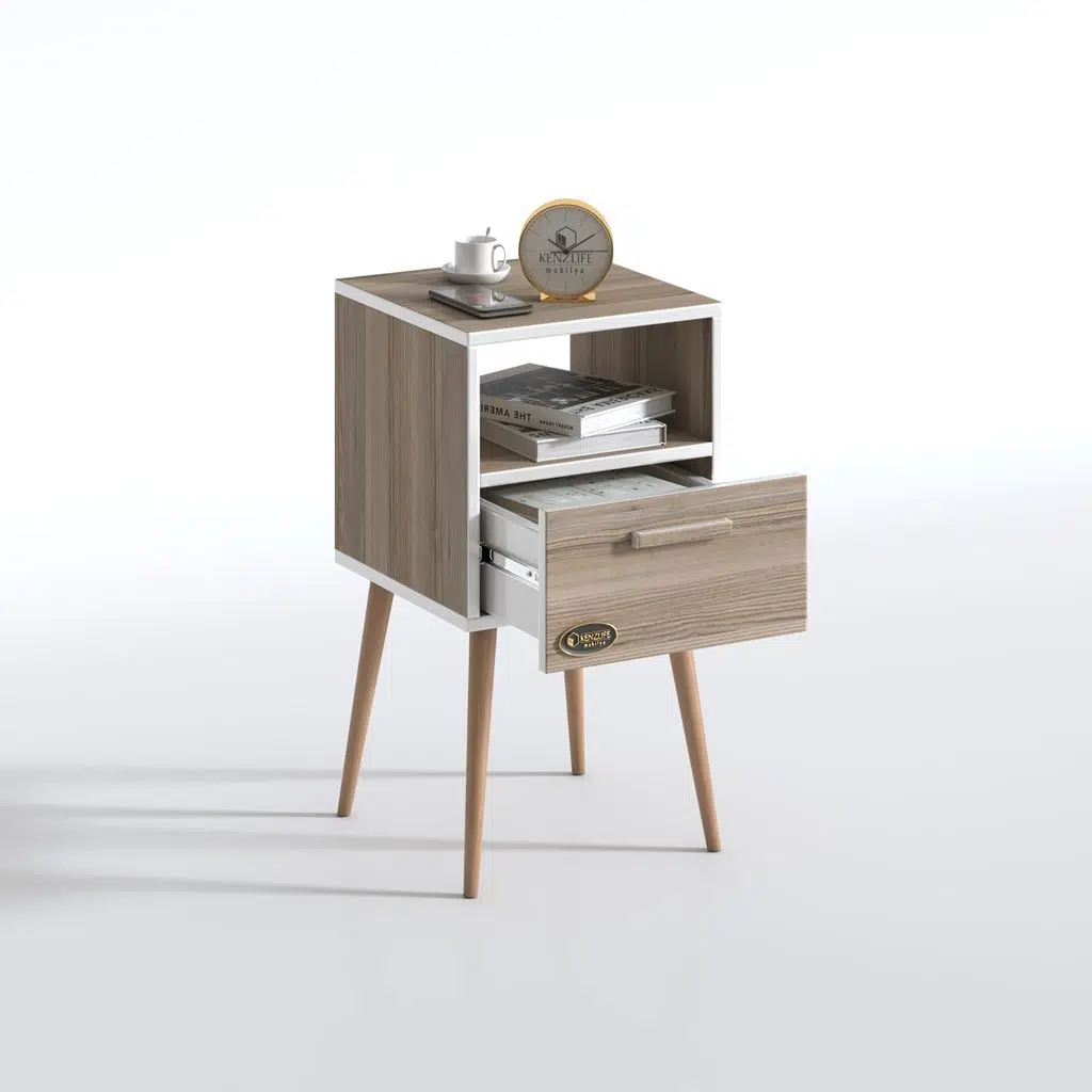 Kenzlife komodin budurgan crd 74*39*39 ahşap ayaklı raflı çekmeceli komidin kitaplık