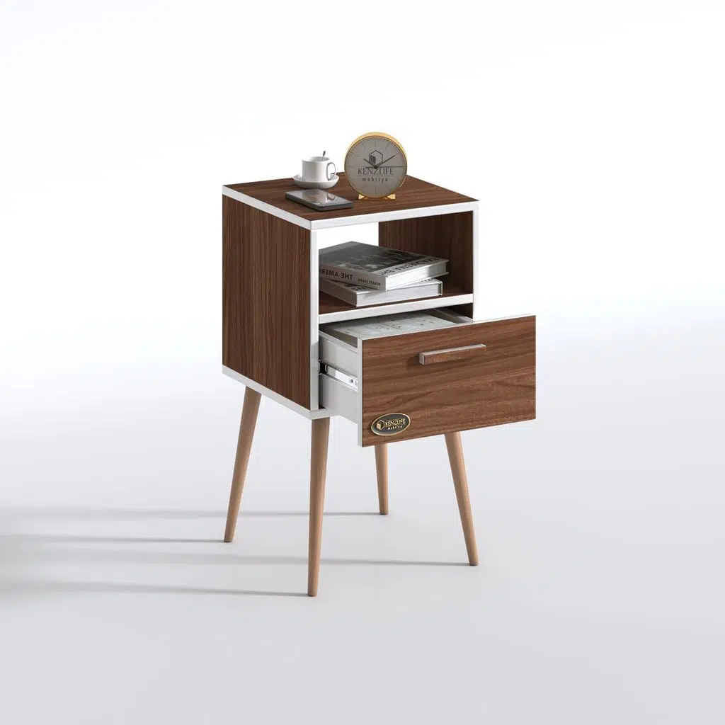 Kenzlife komodin budurgan cvz 74*39*39 ahşap ayaklı raflı çekmeceli komidin kitaplık