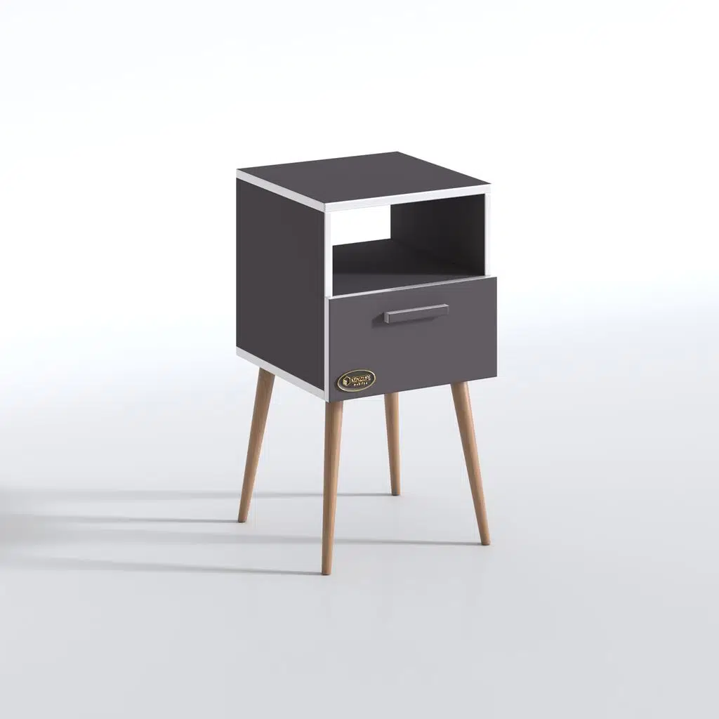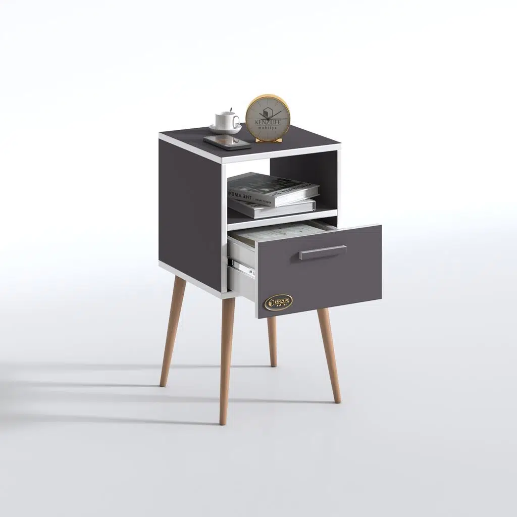 Kenzlife komodin budurgan gri 74*39*39 ahşap ayaklı raflı çekmeceli komidin kitaplık