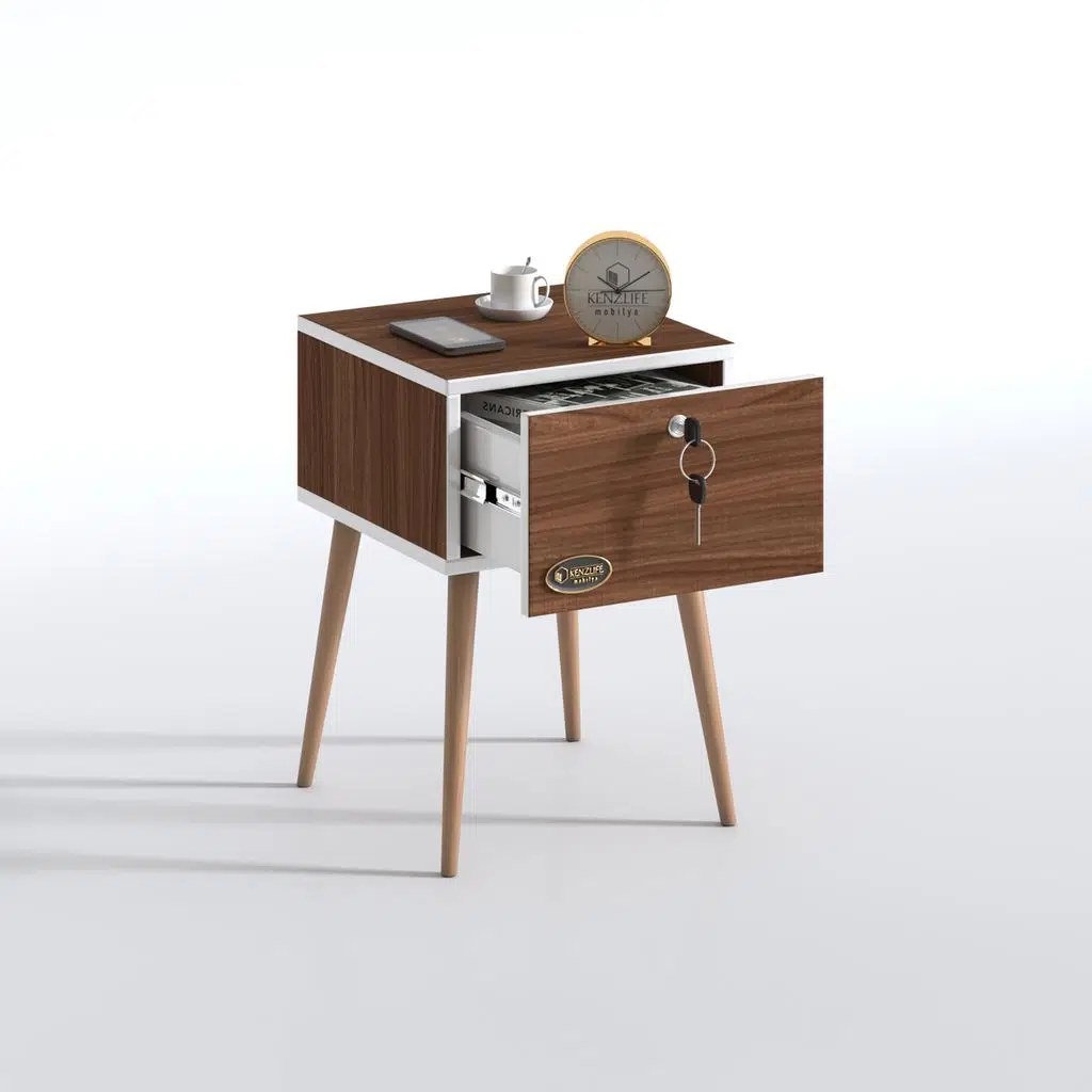 Kenzlife komodin çıntay cvz 57*39*39 çekmeceli kilitli ahşap ayaklı komidin
