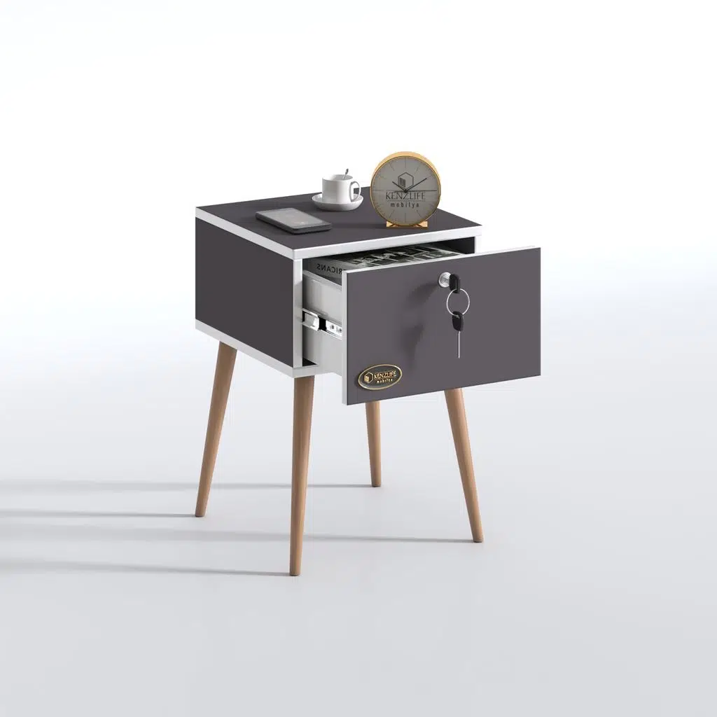 EtiketlerKenzlife komodin çıntay gri 57*39*39 çekmeceli kilitli ahşap ayaklı komidin