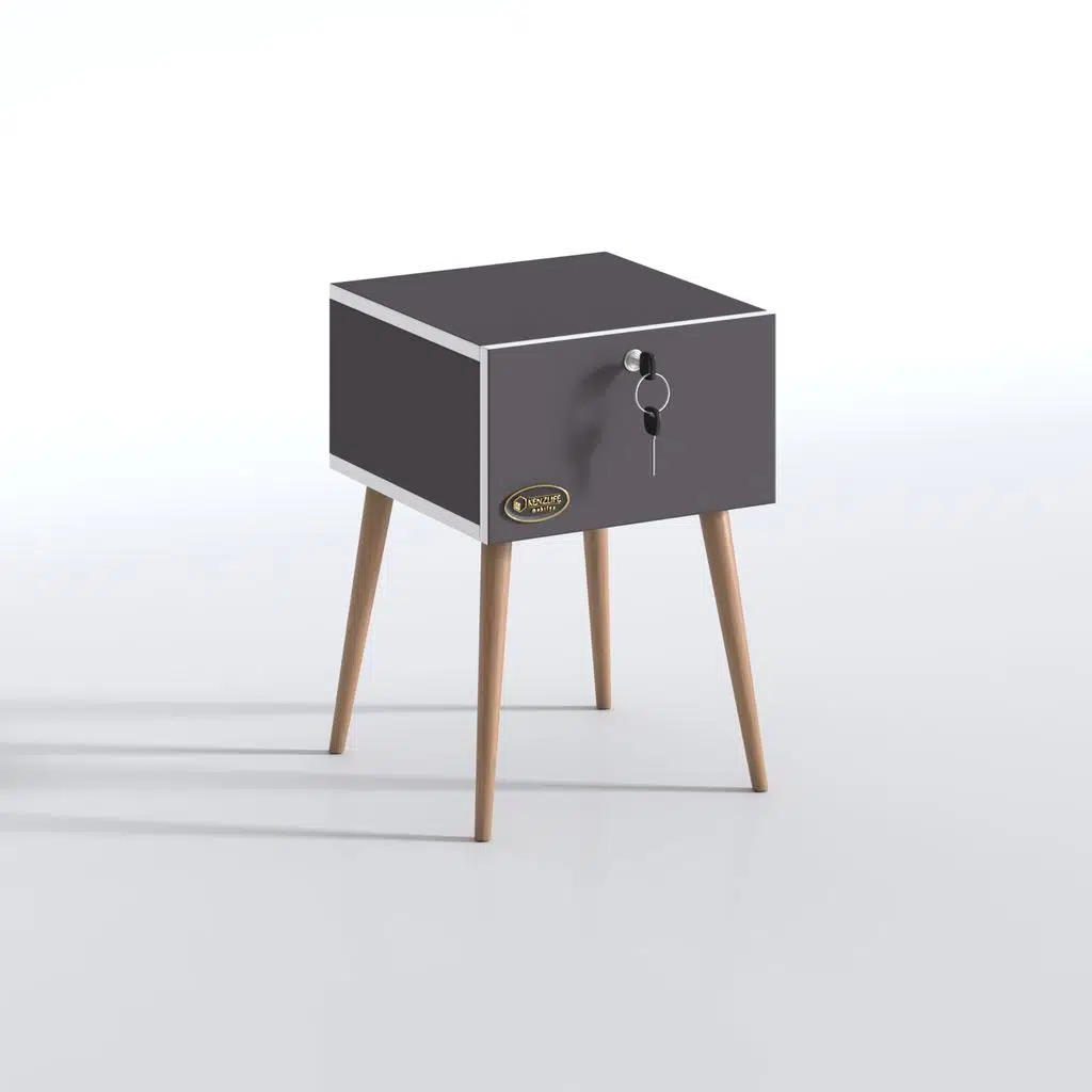 Kenzlife komodin çıntay gri 57*39*39 çekmeceli kilitli ahşap ayaklı komidin