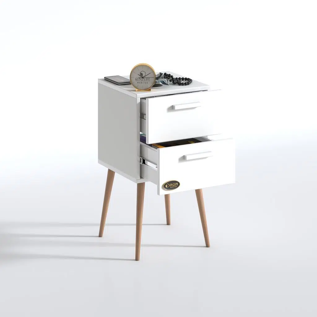 Kenzlife komodin donatur byz 74*39*39 çift çekmeceli ahşap ayaklı komidin