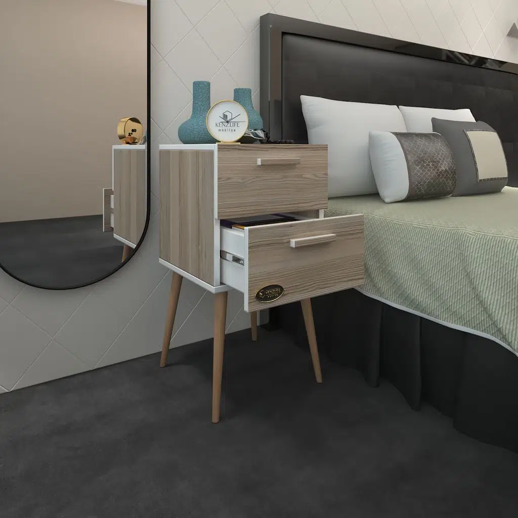 Kenzlife komodin donatur crd 74*39*39 çift çekmeceli ahşap ayaklı komidin