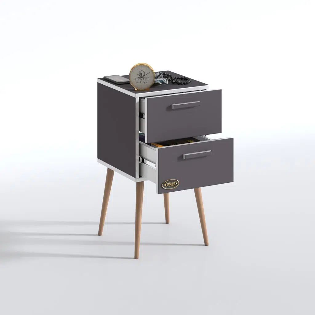 EtiketlerKenzlife komodin donatur gri 74*39*39 çift çekmeceli ahşap ayaklı komidin