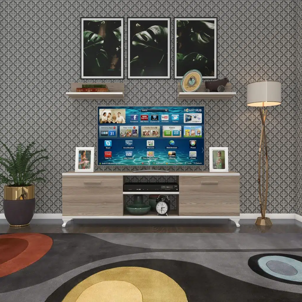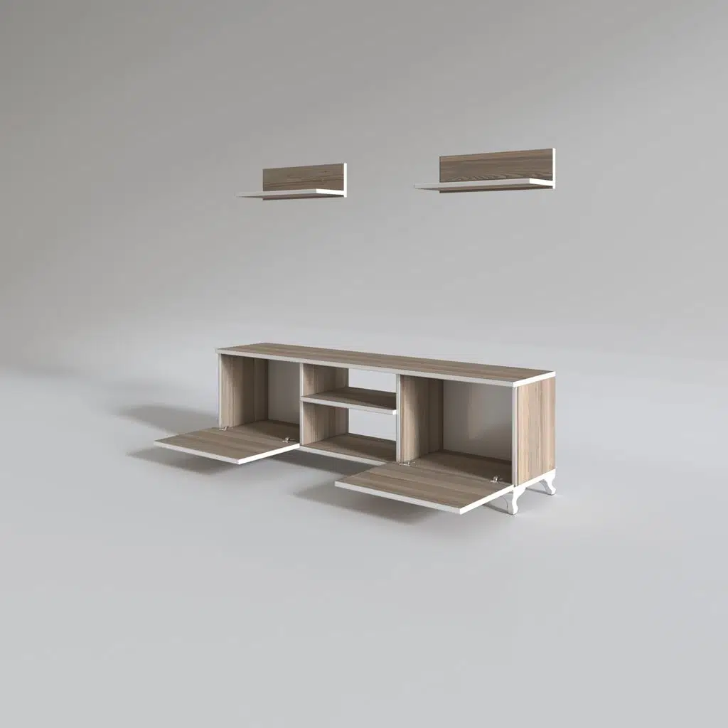 Ürünümüz üzerinde 2 adet raf olan 2 kapaklı televizyon sehpasıdır.