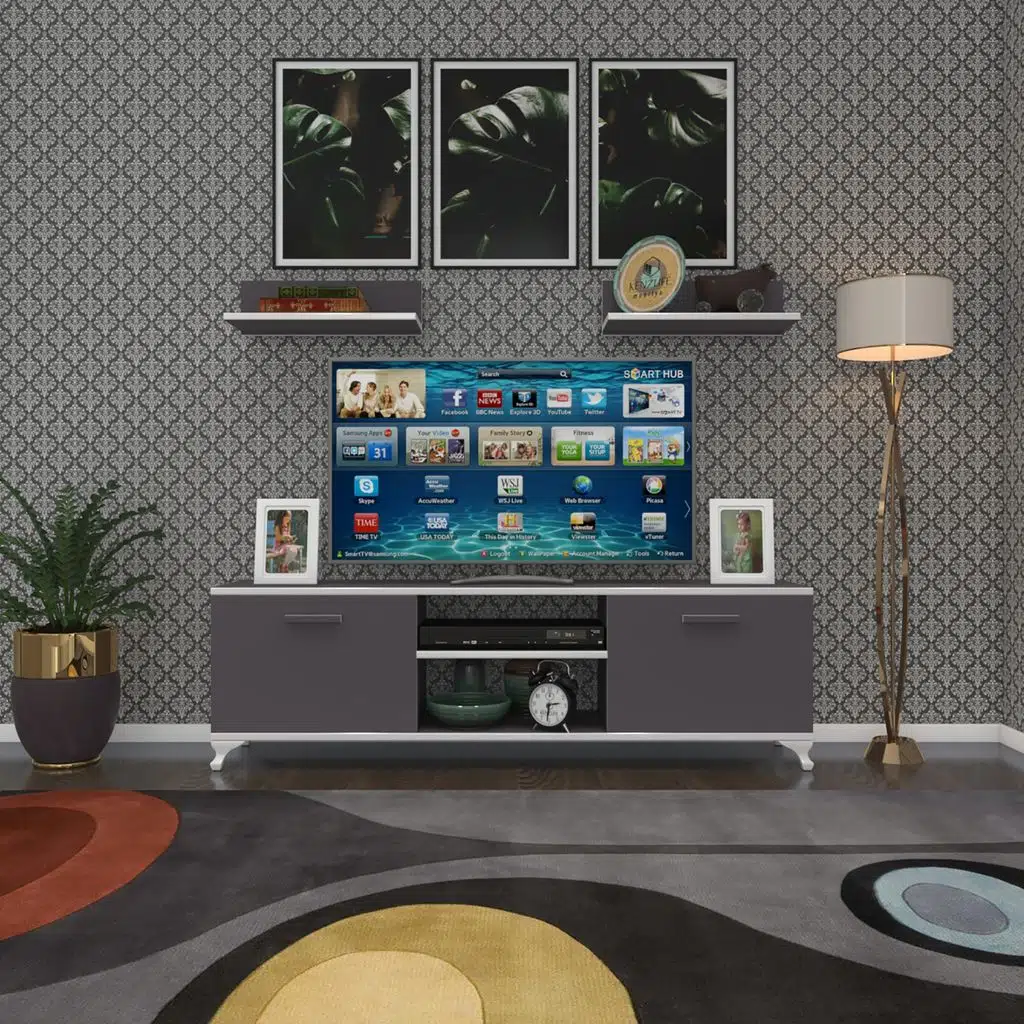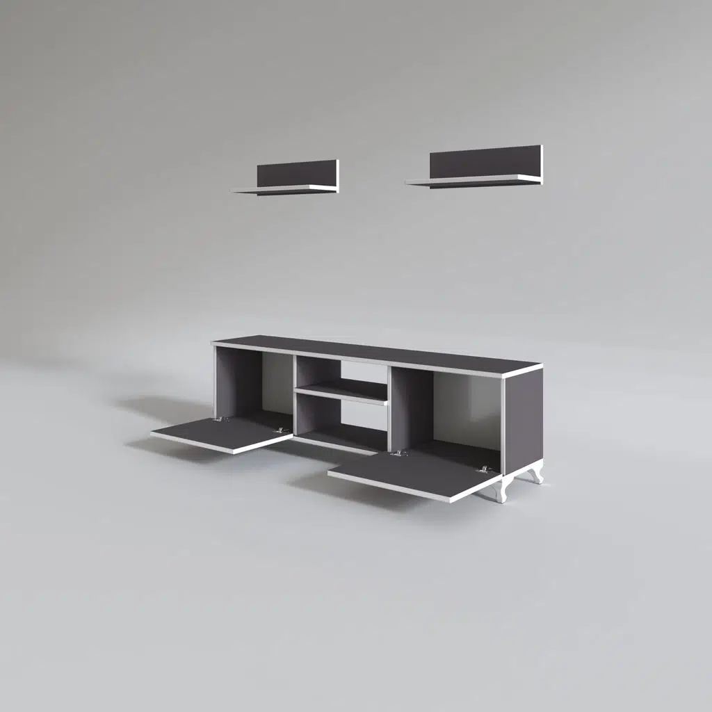 Ürünümüz üzerinde 2 adet raf olan 2 kapaklı televizyon sehpasıdır.
