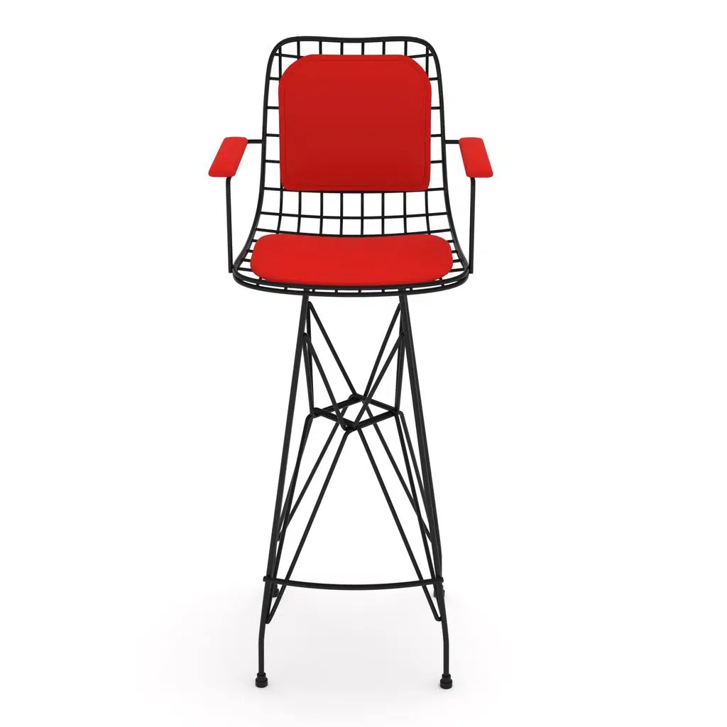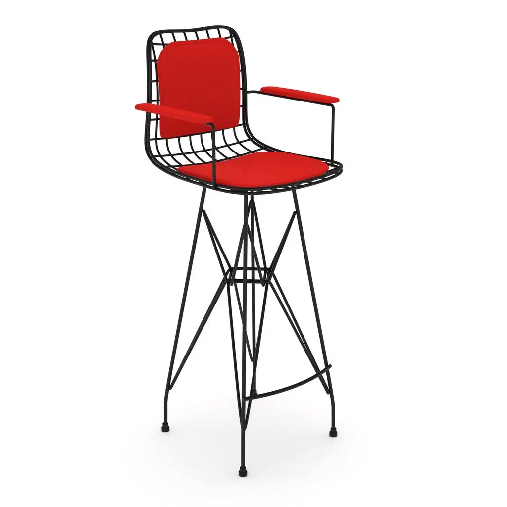 Knsz kafes tel bar sandalyesi 1 li zengin syhkrm kolçaklı sırt minderli 75 cm oturma yüksekliği ofis cafe bahçe mutfak