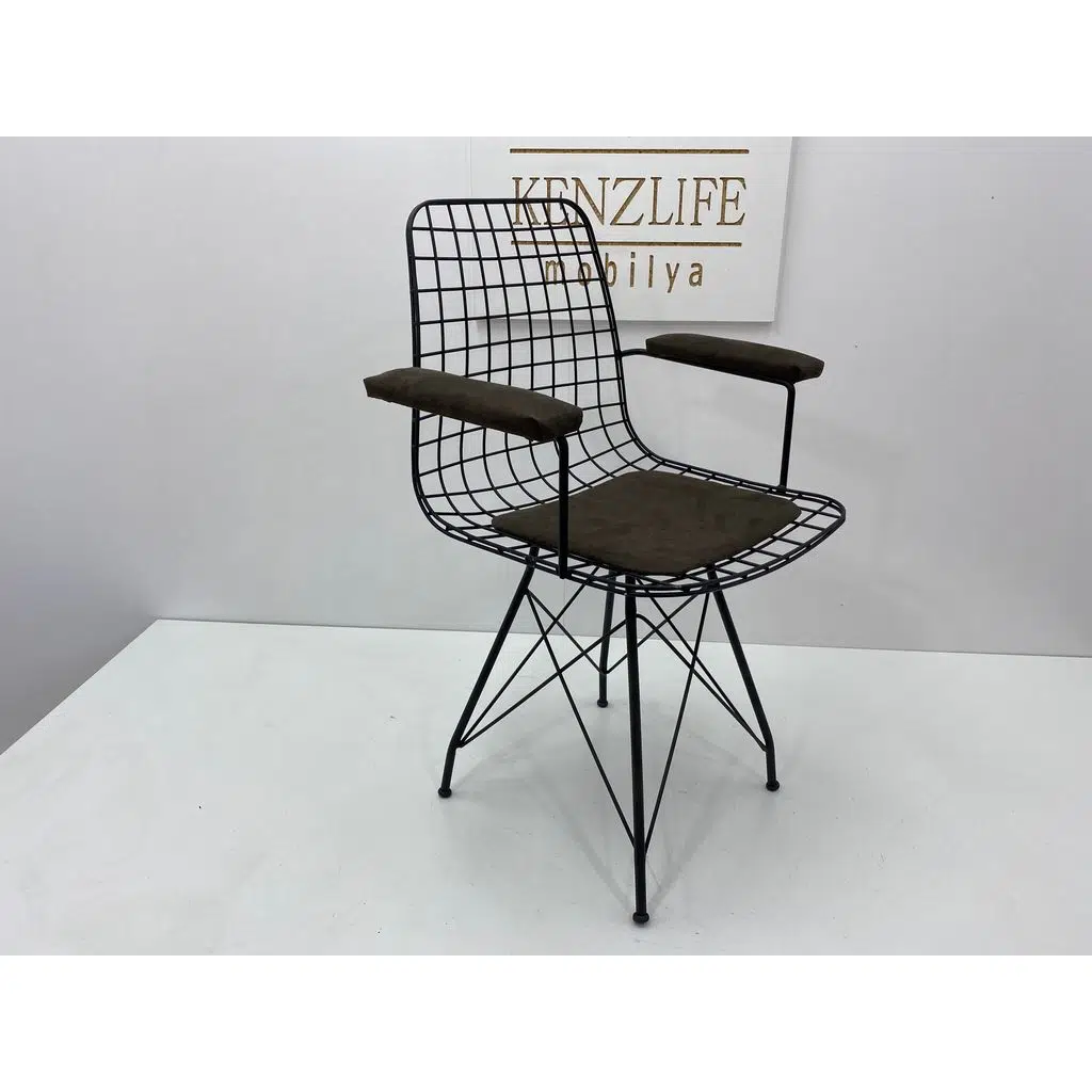 Knsz kafes tel sandalyesi 1 li mazlum syhkahve penye kumaş kolçaklı ofis cafe bahçe mutfak