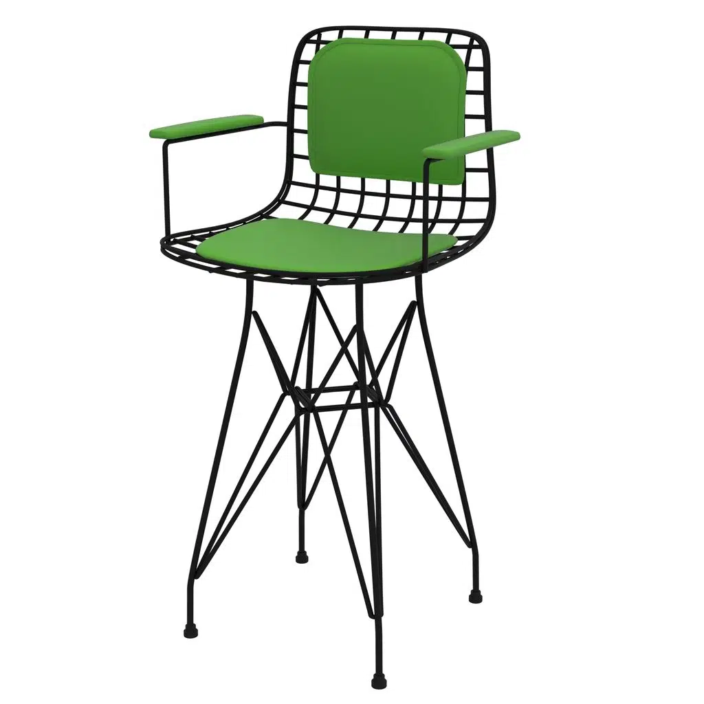 EtiketlerKnsz ufak boy tel bar sandalyesi 1 li uslu syhyşl kolçaklı sırt minderli 55 cm oturma yüksekliği mutfak bahçe cafe ofis